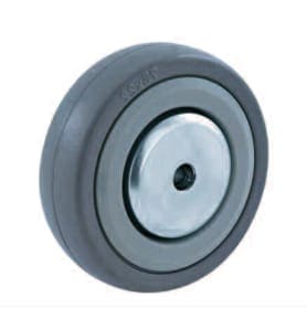 Wiel 5R, grijs rubberband (80° Shore A) plaatstalen velg verzinkt-gepassiveerd met stalen draad beschermingskappen.