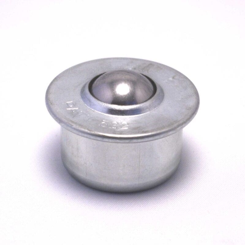 Kogelpot met stalen kogel gedragen door kogels. Metalenhuis verzinkt. Toegepast in transporttafels.