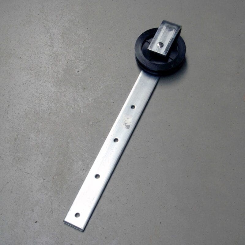 Hangdeurrol polyamide (PA) of gietijzer. Bedoeld om een deur hangend over een profiel te laten rijden.