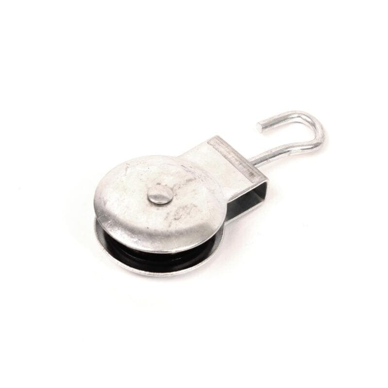Katrol zwart POM (Polyoxymethyleen). Glijlager. Met V-groef afgerond onderin.