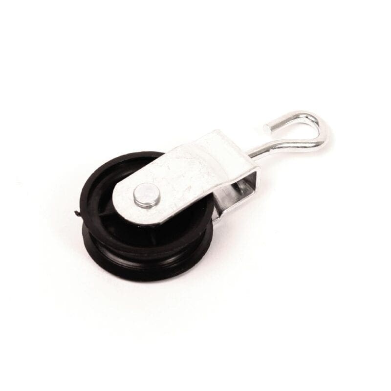 Katrol zwart POM (Polyoxymethyleen). Precisiekogellager of glijlager. Met V-groef afgerond onderin.