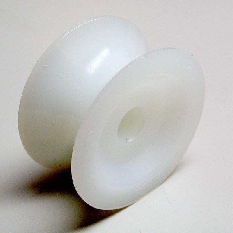 Groefwiel van wit polyamide (PA).