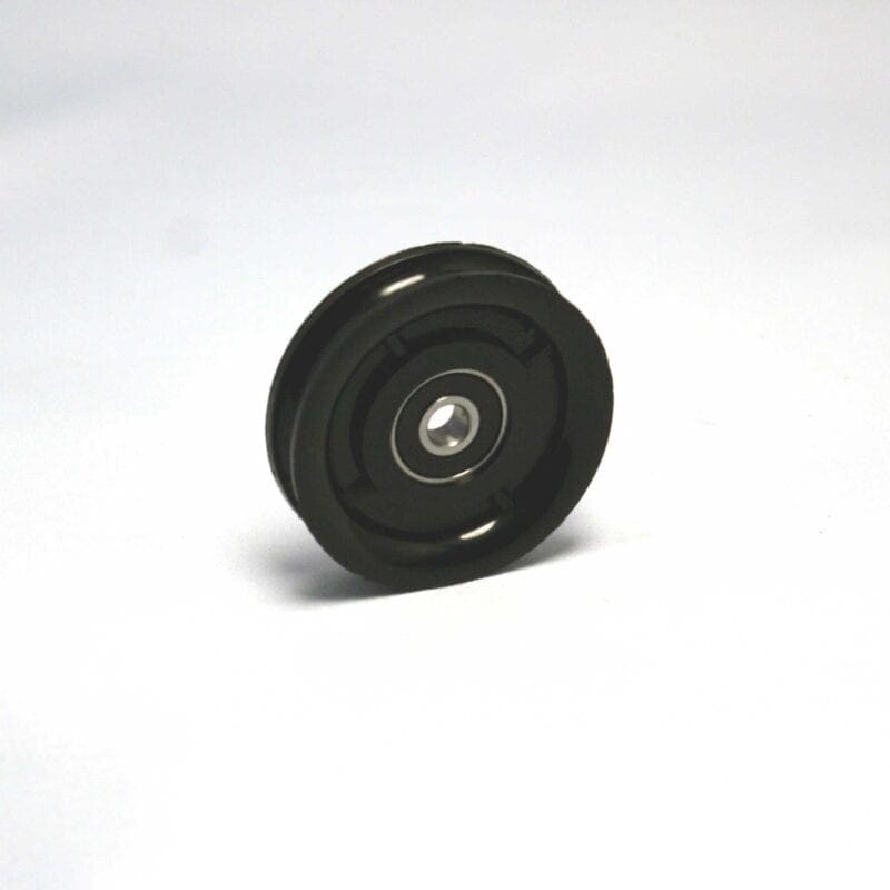 Groefwiel van zwart polyamide (PA). Ronde groef. 1-precisiekogellager.