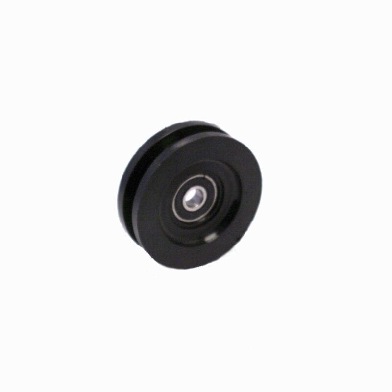 Groefwiel van zwart polyamide (PA). Vierkante groef. 2-precisiekogellagers (GW-VPK0600708 is met 1-kogellager).