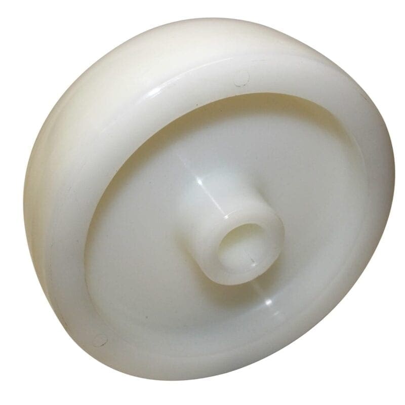 Wiel serie 9P. Polyamide (PA) wit. Kogellager. Ook leverbaar in glijlager of rollager. Bedoeld voor gladde ondergrond welke niet kwetsbaar is.