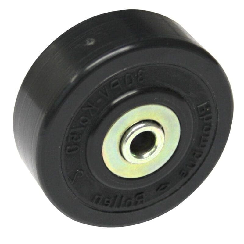 3D050C06 zwarte polyurethaan (PU) band RAL 7021 (Shore A 95) met zwarte kunststof kern, conuskogellager.