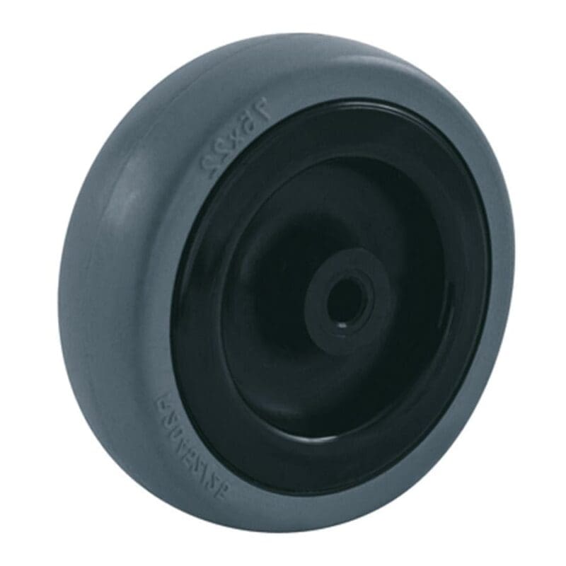 Wiel serie 3R. Grijs rubberband (80 graden Shore A) kunststof velg. Glijlager. Voor sommige wielen is een asbus verkrijgbaar.