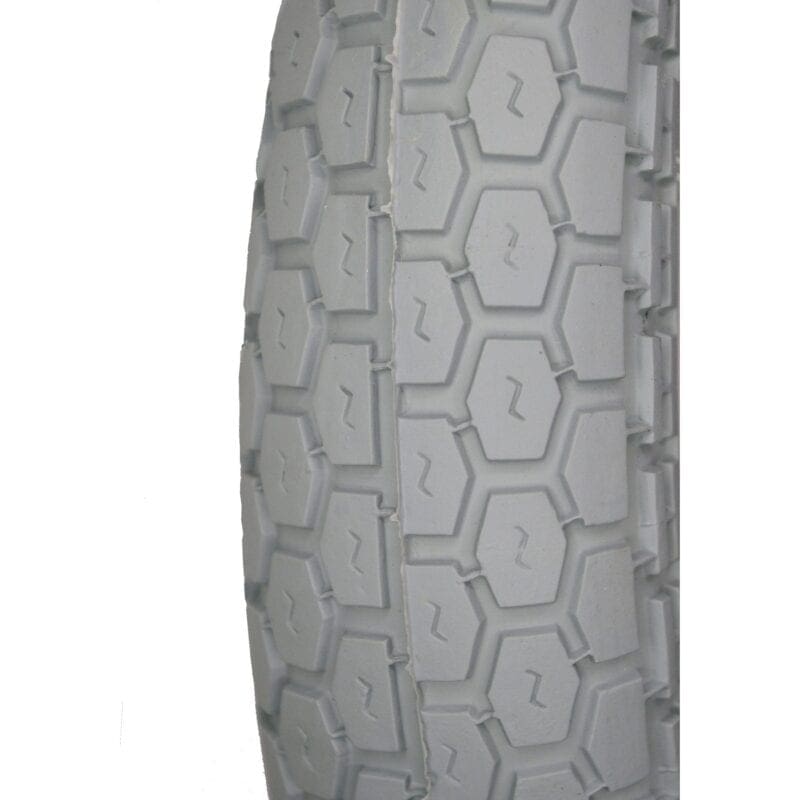 Deze buitenbanden van grijs rubber worden vaak gebruikt voor zorg hulpmiddelen. Deze banden geven niet af / strepen niet.