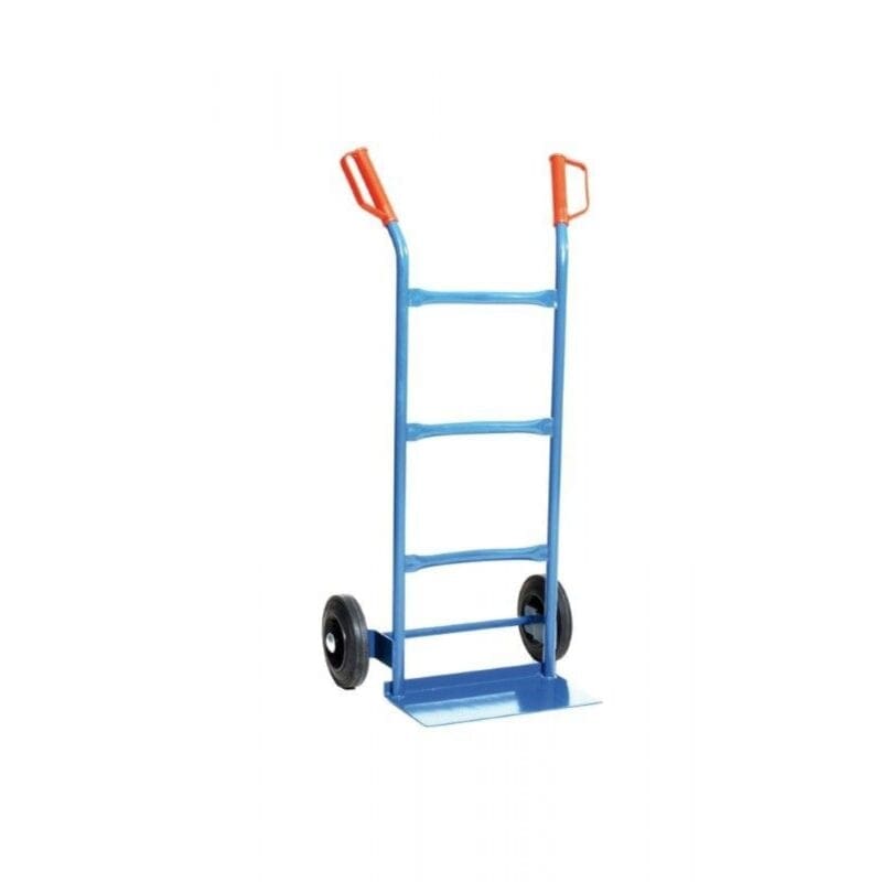 Steekwagen van staalbuis. Wiel massief zwart rubber glijlager. Poedercoating RAL 5001 groenblauw.