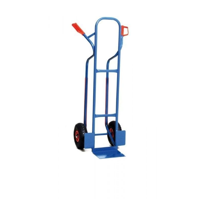Krattenwagen van staalbuis met glijstrips. Wiel lucht rollager. Poedercoating RAL 5001 groenblauw.