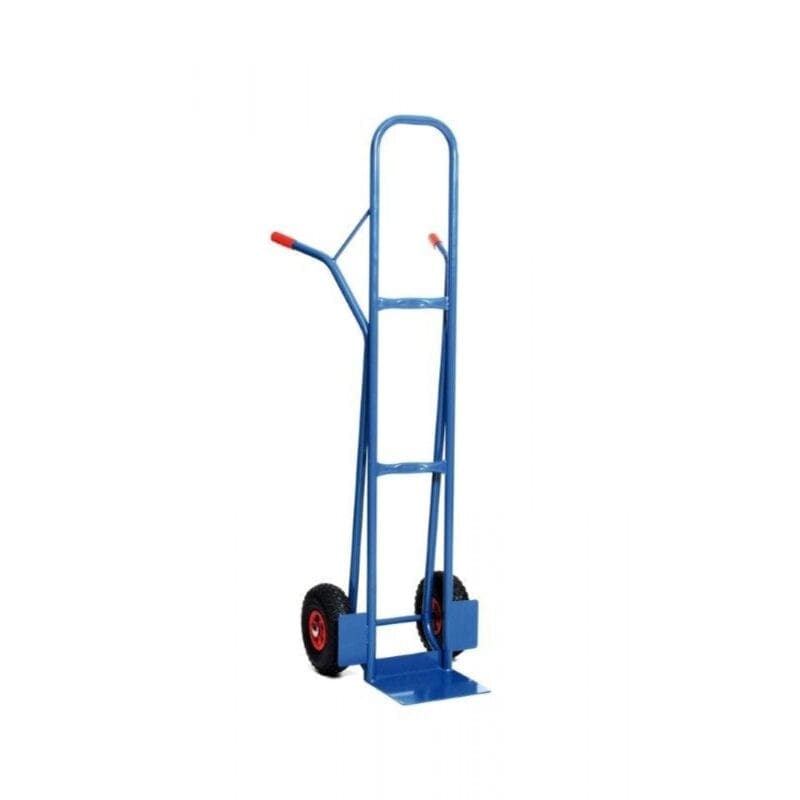 Krattenwagen van staalbuis. Wiel lucht rollager. Poedercoating RAL 5001 groenblauw.