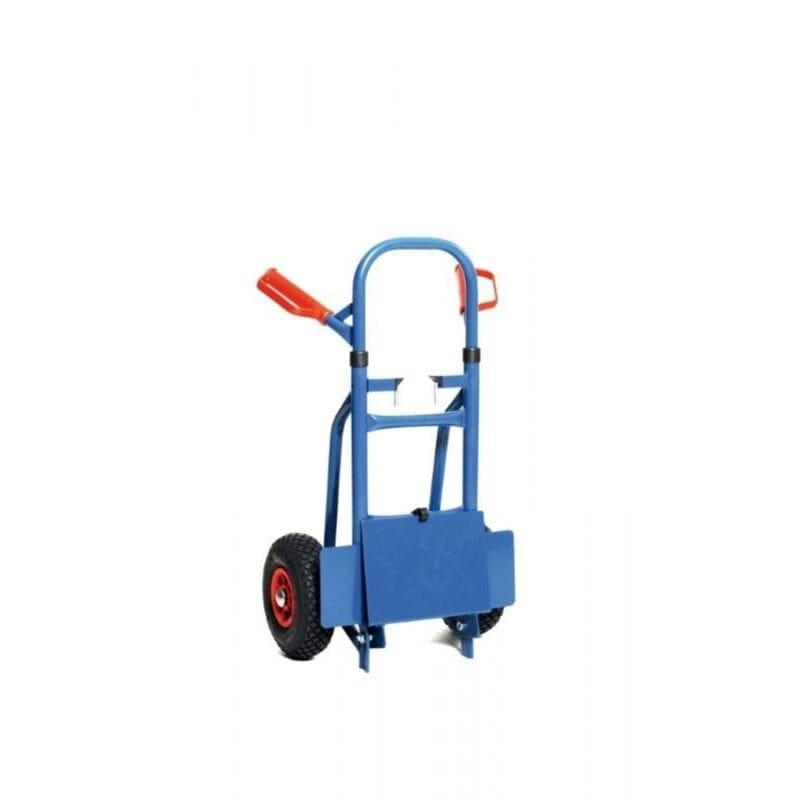 Steekwagen inklapbaar van staalbuis. Wiel lucht rollager. Poedercoating RAL 5001 groenblauw.