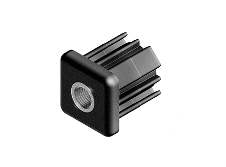 Draadbus vierkant van polyamide met ingegoten brons vernikkelde bus met binnendraad.