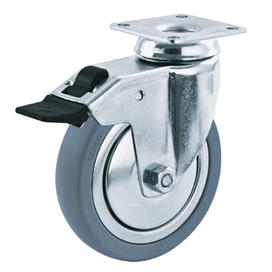 Wiel serie 5R, grijs rubberband (80 graden Shore A) met plaatstalen velg, conuskogellager.