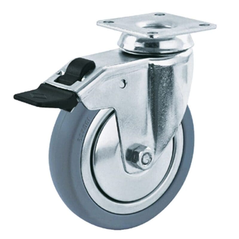 Rem blokkeert wiel en zwenk.