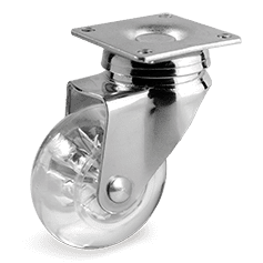 Plaatstalen vork, verzinkt. Methacrylaat kern met polyurethaan (PU) band. Glijlager. Geeft niet af / streept niet.