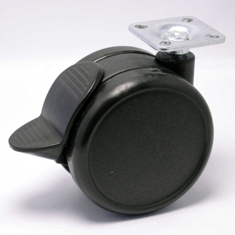 Zwenkwiel polyamide 6 (PA) kern zwart met polyurethaan (PU) zwart loopvlak. Glijlager. Geeft niet af / streept niet. O.a. geschikt voor houten- en parketvloeren.