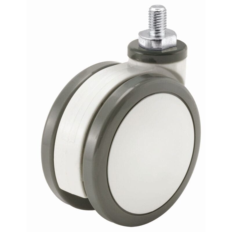 Zwenkwiel kunststof dubbelwiel. Kogellager in zwenk. Wiel met thermoplastische polyurethaan (TPU) band Shore A 95. Precisie kogellager.